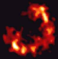 Manchester - December 8, 1999 - British radio astronomers have used a telescope the size of the earth to peer into the heart of a nearby galaxy where they have found the scattered remains of stars that have torn themselves apart in catastrophic explosions.These remnants contain the heavy elements which are the building blocks for life itself and, for the first time, astronomers can now study in detail the mechanism by which this material is introduced and scattered into space. Their highly detailed images, from one of the largest radio astronomy experiments ever performed, will be presented at the December 10th meeting of the Royal Astronomical Society. The astronomers are led by Dr. Alan Pedlar and Dr. Tom Muxlow of the Jodrell Bank Observatory (University of Manchester), and Dr. Karen Wills of Sheffield University. Using a collection of 20 radio telescopes spaced right around the earth, the team have produced an image of unprecedented detail of the galaxy known as M82. They found bright remnants of exploding stars and, comparing them with images taken many years ago, have found these shells of gas are expanding at up to 20,000 km every second. The youngest object they found to be only 35 years old. The technique of combining the signals from radio telescopes spaced across continents results in very detailed pictures of the sky. The British astronomers have performed their observations with one of the largest ever collections of telescopes. It's as if they had a telescope 12,000 km across.