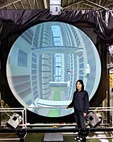 Japanese electronics firm Mitsubishi Electric has developed a dome-shaped screen which is billed as offering viewers a wider, three-dimensional images. The system, which has a dome three meters (9.9 feet) in diameter and screen projectors, can use computer graphics designed for conventional flat screens without any modification and adjust possible distortion. Mitsubishi Electric is "planning to offer the system to the amusement market and the advertising market, where the system rides on the strength of realistic visualization," the company said in a statement. It developed the system with a subsidiary, Mitsubishi Precision, which is manufacturing driving and flight simulation systems. It is yet to decide on when it will launch the system or its price. All rights reserved. � 2005 Agence France-Presse. Sections of the information displayed on this page (dispatches, photographs, logos) are protected by intellectual property rights owned by Agence France-Presse. As a consequence, you may not copy, reproduce, modify, transmit, publish, display or in any way commercially exploit any of the content of this section without the prior written consent of Agence France-Presse. Related Links TerraDaily Search TerraDaily Subscribe To TerraDaily Express