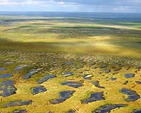 Continued arctic warming may be causing a decrease in the number and size of Arctic lakes. The issue is the subject of a paper published in the June 3 issue of the journal "Science." The paper, titled, "Disappearing Arctic Lakes" is the result of a comparison of satellite data taken of Siberia in the early 1970s to data from 1997-2004. Researchers, including Larry Hinzman with the Water and Environmental Research Center at the University of Alaska Fairbanks, tracked changes of more than 10,000 large lakes over 200,000 square miles. "This is the first paper that demonstrates that the changes we are seeing in Alaskan lakes in response to a warming climate is also occurring in Siberia," said Hinzman, who has also compared satellite data of tundra ponds on the Seward Peninsula near Council, Alaska and found that the surface pond area there had decreased over the last 50 years. In this latest study, comparing data from 1973 with findings from 1997-98, the total number of large lakes decreased by around 11 percent. While many did not disappear completely they shrank significantly. The overall loss of lake surface area was a loss of approximately 6 percent. In addition, 125 lakes vanished completely and are now re-vegetated. Laurence Smith, an associate professor of geography at the University of California Los Angeles, is the article's lead author. Smith and his co-authors were surprised by the overall loss in surface water. "We were expecting the lake area to have grown with climate change," said Smith. "And while it did do so in the north where the permafrost remains intact, lake area did not increase in the south where permafrost is warming." In permafrost regions, summer thaw produces meltwater, which is typically unable to infiltrate into the ground because of the ice-rich frozen soils found in permafrost. Data gathered from the latest measurements indicate that warming temperatures lead to increased numbers of surface water bodies in the colder permafrost regions. Many lakes decreased in size or dried up completely, while other lakes actually increased in size. Researchers say as the climate warms, additional meltwater accumulated in the lakes located in the colder regions of thicker permafrost increase their size; however, if climate warming continues, even those lakes would eventually be susceptible to loss. "We expect areas of continuous permafrost to continue to thin and move steadily northward, resulting in the disappearance of more lakes," said Smith. In regions with thin or discontinuous permafrost, surface soils also become drier as the permafrost degrades. "The changing lakes are a consistent, measurable indication of the overall changes to hydrology in the Arctic," said Hinzman. "The loss of surface water will inevitably impact local ecosystems, which will have a cascading effect. Changes could include loss of migratory bird habitat resulting in an effect on subsistence activities as well as changes to local and regional atmospheric conditions, including more localized wind and more frequent and more severe wildland fires."