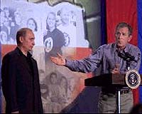 Washington (AFP) Nov 14, 2001Presidents George W. Bush and Vladimir Putin head for their next meeting in Texas Wednesday, after seeing eye to eye on deep cuts in the US nuclear arsenal but failing to come closer on missile defense. "We intend to dismantle conclusively the vestiges of the Cold War and to develop (an) entirely new partnership for (the) long term," Russian President Putin said at a joint press conference on the first day of a three-day summit. Bush and Putin Do BBQ But ABM Deal Off The Menu