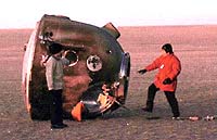Beijing (AFP) November 22, 1999 - China's state press Monday championed the technological breakthrough of the first test launch of its burgeoning manned space program but revealed little of its costs or goals."The road to manned space flight is long and is a huge undertaking that is full of risks," the leading People's Daily said in an editorial on the return of the unmanned space capusule Sunday. An unverified photo showing the reentry capsule after touching down in Inner Mongolia. Dubbed 'Shenzhou' by President Jiang Zemin, the capsule is part of China's manned space flight program. Xinhua/AFP Photo "But the price for the future of mankind and our country's politics, military, economy and science and technology will be hugely influential." The 21-hour, 14-orbit flight of the "Shenzhou" space craft would be beneficial to resolving the difficulties facing mankind like diminishing resources, environmental degradation and a population crisis, Chinese papers said with little elaboration. The state-controlled Chinese media failed to detail costs of the manned space flight program, nor was it clear whether China hoped to develop a space shuttle, a space station or a lunar program. "None of this has been announced, I don't know what the future plans are," Zhang Zhiqian, press officier at the China Aerospace Science and Technology Consortium, the state-run backer of the program, told AFP. Sai Liu Xiaohong, at the State Aerospace Bureau, said: "There is no plan and there is no way to predict what will happen." "This technology is very complicated. China will launch several test flights before putting a man into space," she told AFP. Neither official dared to venture an estimate into the costs of the launch or the overall program. Western diplomats and industry experts based in China strongly underlined national prestige and patriotism as the main factors behind the program, but questioned its costs. "The costs, of course, are astronomical," a China-based western space industry official told AFP. A rocket launch could cost anywhere between 50 million and 100 million dollars, while the upgrading, reliability checks and back-up systems required for manned space flight could result in costs quadrupling, he said. "How many manned space capsules are you going to build? A handful of space capsules could be pretty expensive," he said on condition of anonymity. It was unclear how China would pay for the program, but success in the manned space program could carry over into China's commercial satellite launches which already have a proven track record, he said. "It's unclear what China's pricing mechanism is like because first of all these are state programs bringing prestige to China, so it will have a lot of government funding," he said. One thing was sure though, no money would be made from the manned space program, a western diplomat in Beijing said. Most of the tests, like weather, intelligence, imaging and military experiments that could be carried out with a manned space flight were already being tested in China's recovery satellite program, he said. "This above all else is a national prestige thing," the diplomat stressed. Said the space industry official: "I expect a few manned space flights, but I don't think they will go into a space shuttle, space station program or a lunar program. "The best thing for China would be for them to join in the international space station and be more cooperative in this area, that would be the most rationale choice."