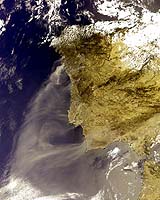 Plumes of smoke from serious wildfires across Portugal fan into the Atlantic in this Envisat satellite view acquired on 21 August. Dozens of wildfires are reported throughout the country, which has suffered one of its worst droughts for decades. Fanned by high winds, the fires have destroyed more than 140 000 hectares of land and killed at least 15 people. Stricken areas include the vicinity of the city of Coimbra, Portugal's third largest city, around 200 km northeast of Lisbon. On the outskirts of the city firefighters are attempting to keep the blazes at bay. Other fires are reported to be burning in the northern districts of Viseu and Viana do Castelo. Firefighting aircraft from France, Germany, Italy and the Netherlands are participating in control activities following an appeal for help by Portugal's government. This international assistance supplements a national firefighting effort of 49 aircraft, around 800 vehicles and 3000 firefighters. The images here come from the Medium Resolution Imaging Spectrometer (MERIS) aboard Envisat, Europe's largest-ever Earth Observation satellite, operating in Reduced Resolution mode for a spatial resolution of 1200 metres. Related Links TerraDaily Search TerraDaily Subscribe To TerraDaily Express ![]() ![]() Moroccan desert sand seas ripple in the sun. Rugged, snowcapped Himalaya Mountains pierce the heavens. Egyptian lakes spill liquid metal onto the Earth's surface while stretches of shoreline summon the eye.