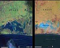Nairobi (AFP) Oct 31, 2005 Satellite images show alarming deterioration to Africa's lakes that must be reversed if the continent's precious water resources are not to become a new source of conflict and instability, experts said Monday. The pictures and measurements in a new atlas show "dramatic and, in some cases, damaging environmental changes" that have swept across Africa affecting nearly all of its 677 natural and man-made inland bodies of water, they said. The damming of river sources, industrial pollution, deforestation, salt mining and climate change, have put Africa's lakes -- which contain about 30,000 cubic kilometers (7,200 cubic miles) of water, the largest volume of any continent -- under increasing pressure from spiralling populations, they said. "I hope these images of Africas lakes will galvanize ... greater action to conserve and restore these crucial water bodies," said Klaus Toepfer, executive director of the UN Environmental Programme (UNEP). "Otherwise, we face increasing tensions and instability as rising populations compete for lifes most precious of precious resources," he said, unveiling the new Atlas of African Lakes prepared by UNEP and the University of Oregon. "We need to manage our resources to avoid future conflicts," said Wangari Maathai, Kenya's assistant minister for the environment and the 2004 Nobel Peace laureate. In particular, the atlas shows the rapid shrinking of Ghana's brackish Lake Songor due partly to salt mining, extraordinary changes to Senegal's Lake Djoudj and the Zambezi river system caused by the construction of dams and the near 90-percent shrinkage of Lake Chad. It also depicts the damage wrought by large-scale deforestation around Kenya's Lake Nakuru and a meter (three-foot) drop of Lake Victoria, Africa's largest fresh-water lake, since the early 1990s. Such destruction not only hinders water supplies for agriculture but also affects fish, a cheap and important source of protein for many impoverished Africans, it said. "Overall, poor management of water catchments has led to excessive erosion, increased cost of water treatment...and a reduction of their economic life," the World Bank's Colin Bruce said. An accompanying report, prepared for the 11th annual World Lakes Conference that opened in Nairobi Monday, called for not only reversing these trends but also strengthening African water resource-sharing treaties between states. "In order to reduce tensions between nations, much more needs to be done to beef up shared agreements and treaties to avoid instability in the future," it said. Of most concern in this area is west Africa's Volta River basin, which is shared by Benin, Burkina Faso, Ghana, Ivory Coast, Mali and Togo and where resources are now strained to the breaking point. "With the sustainability of the Volta basin under threat, there is urgent need for basin states to cooperate more closely to jointly manage the basins water resources," it said. Also threatened are lake and riverine-associated wetlands, including the Okavango Delta the Lake Victoria and Chad basins and the floodplains and deltas of the Congo, Niger and Zambezi rivers, which are important wildlife habitats, key water sources and pollutant filters, the report said. All rights reserved. � 2004 Agence France-Presse. Sections of the information displayed on this page (dispatches, photographs, logos) are protected by intellectual property rights owned by Agence France-Presse. As a consequence, you may not copy, reproduce, modify, transmit, publish, display or in any way commercially exploit any of the content of this section without the prior written consent of Agence France-Presse. Related Links TerraDaily Search TerraDaily Subscribe To TerraDaily Express