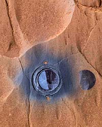 In any case, the discovery of these salt-filled cracks in some of the Gusev rocks by Spirit nicely meshes with the existence of thin cracks in some of the "SNC" Mars meteorites that have been identified on Earth -- cracks which are also lined with small amounts of various substances produced when igneous rock is exposed to water, such as sulfate and chloride salts, clays, carbonates and iron oxides. There's no doubt that the water that deposited these minerals came from Mars rather than earth -- its content of deuterium (heavy hydrogen) is much higher than that of Earth water -- but there has been much debate over whether the water may have been melted out of Martian ice only by the shock of the giant meteoroid impacts that launched the rocks off Mars into solar orbit.