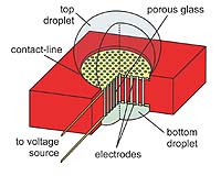 Ithaca NY (SPX) Aug 23, 2005 Imagine this: A tiny, fast switch that uses water droplets to create adhesive bonds almost as strong as aluminum by borrowing a mechanism found in palm beetles. The new beetle-inspired switch, designed by Cornell University engineers, can work by itself on the scale of a micron - a millionth of a meter. The switches can be combined in arrays for larger applications like powerful adhesive bonding. Like the transistor, whose varied uses became apparent only following its invention, the uses of the new switch are not yet understood. But the switch's simplicity, smallness and speed have enormous potential, according to the researchers. "Almost all the greatest technological advances have depended on switches, and this is a switch that is fast and can be scaled down," said Paul Steen, a professor of chemical and biomolecular engineering at Cornell and co-author of a paper published in the Proceedings of the National Academy of Sciences (Vol. 102, No. 34). Steen dreamed up the idea of the switch after listening to Cornell entomologist Tom Eisner lecture on palm beetles, which are native to the southeastern United States. Like the beetle, which clings to a palm leaf at adhesive strengths equal to a hundred times its own body weight - the human equivalent of carrying seven cars - the switch in its most basic form uses surface tension created by water droplets in contact with a surface, in much the same way as two pieces of wet paper cling together. When attacked, the palm beetle attaches itself to a leaf until the attacker leaves. It adheres with 120,000 droplets of secreted oil, each making a bridgelike contact between the beetle's feet and the leaf. Each droplet is just a few microns wide. Whereas the beetle controls the oil contacts mechanically, Steen's switch uses water and electricity. For the switch to make or release a bond created by surface tension, a water droplet moves to the top or bottom of a flat plate surface using electricity from electrodes. The electricity moves positively charged atoms, called ions, in the water through the minute capillaries of a thin disk of porous glass embedded in the plate. The water moves and wells up into a micrometer-sized droplet on the plate surface. The exposed droplet can then stick to another surface. To break the bond, electricity pulls the exposed water back through the capillary pores. With millimeter-sized water droplets and micron-sized pores, 5 volts can turn the switch on in one second. At the same time, the researchers predict that smaller droplets will require less energy to move and have faster switching times. Steen and his colleagues believe that a switch as small as hundreds of nanometers, close to a billionth of a meter and one-tenth the size of the beetle droplets, is within reach. Researchers could also create large effects from many tiny switches by connecting them in various arrangements, Steen said. "This new technology bridges the gap between scales as large as our hands and nanoscales," said Steen. "We need devices that allow us to communicate between the two scales." Co-authors include Michael Vogel, a postdoctoral researcher in Cornell's Department of Chemical and Biomolecular Engineering, and researcher Peter Ehrhard at the Institute for Nuclear and Energy Technologies in Karlsruhe, Germany. Since much of this work was conducted while the three scientists were at the German institute, the patent application was filed in Germany. The study was supported by NASA, the National Science Foundation, the Forschungszentrum Karlsruhe and the Deutscher Akademischer Austausch Dienst. Related Links TerraDaily Search TerraDaily Subscribe To TerraDaily Express