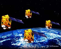 The ESSAIM micro-satellites, launched at the end of 2004, have been operational since May, 2005. The French defence procurement agency DGA chose EADS Astrium as a joint prime contractor for the development of the ESSAIM system. This demonstrator, based on 4 micro-satellites flying in formation through space, will analyze the electromagnetic environment on the ground in a number of frequency bands used exclusively for military communications. The ESSAIM program is a "turnkey" system, comprising the space segment, ground segment, satellite launch facilities and operations. The other partner in this program, Thales Airborne Systems, is contributing its electromagnetic systems expertise. Space segmentThe space segment comprises four satellites, flying in controlled formation in two out-of-phase orbits. The four 120-kg micro-satellites are based on the Myriade platform, developed by French space agency CNES in partnership with EADS Astrium. This program features the very latest space technologies to meet the payload weight and size restrictions imposed by micro-satellites. These technologies include triple junction gallium arsenide solar cells, lithium-ion batteries, highly-integrated electronic components and fiber-optic gyros. Ground segmentCo-located X-band terminals at the mission centre at the DGA's weapons electronics centre (CELAR) in Bruz, near Rennes in western France will receive the data stored on the satellites, as they become visible. The dedicated ESSAIM satellite control centre is located at the CNES facility in Toulouse, near CNES's other Myriade micro-satellite control centers. Related Links EADS Astrium TerraDaily Search TerraDaily Subscribe To TerraDaily Express
