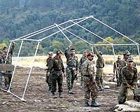 Pakistan's army said Sunday it had finished preparations for opening the first crossing point on the heavily militarised border in Kashmir that will allow vital aid to flow to victims of last month's massive quake. "Everything is ready. We could not have done more than this," Brigadier Tahir Naqvi, the officer in charge of Pakistan's side, told AFP ahead of Monday's historic opening. Indian and Pakistani soldiers using bulldozers worked just a few paces away from each other to prepare the site near the remote Pakistani Kashmir village of Titrinote which faces Chakan Da Bagh in Indian Kashmir. Pakistani troops set up a gate with the two countries' flags on top, while the soldiers from either side were separated only by the border or Line of Control (LoC), delineated by two white flags and a tree. "It has all been done in the last five days. It is meant for the passage of relief goods and the passage of passengers," Naqvi said at the Pakistani side's command post. Pakistan said earlier Sunday it was making final arrangements at five designated crossing points under the historic October 30 agreement to open the border to help earthquake survivors receive assistance. India however has said it is only ready to open one crossing point. Naqvi said Kashmiris would not able to cross yet because the two countries had not yet exchanged their lists of passengers. He said the army had cleared a minefield in the area as well as building a 2.5-kilometre (1.5 mile) dirt track from the nearest road to the crossing point. The army has also set up tents with immigration and customs facilities for people coming over the frontier. "There was a colossal engineering effort for the track. The gate was put up at 8:00 am (0300 GMT) today by us and the Indians have just started putting theirs up," he said. In April, the two sides allowed the first official opening of the LoC since the late 1940s by starting a fortnightly bus service to reunite families in the Indian and Pakistani zones. All rights reserved. � 2005 Agence France-Presse. Sections of the information displayed on this page (dispatches, photographs, logos) are protected by intellectual property rights owned by Agence France-Presse. As a consequence, you may not copy, reproduce, modify, transmit, publish, display or in any way commercially exploit any of the content of this section without the prior written consent of Agence France-Presse. Related Links TerraDaily Search TerraDaily Subscribe To TerraDaily Express