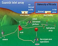 A project led by the University of Victoria is about to make oceanographic history. VENUS, the world's most advanced, cabled seafloor observatory, will be installed next month in the waters of Saanich Inlet north of Victoria, British Columbia. VENUS (the Victoria Experimental Network Under the Sea) pioneers a new approach to studying the oceans. Through the Internet, VENUS's underwater network of fibre optic cables and instruments will continuously feed data, sounds and images from the ocean depths to laboratories, classrooms, science centres and homes around the world. VENUS is interactive, meaning that ocean scientists will no longer be bound by the limitations of ship schedules, bad weather, or delayed access to research data. VENUS scientists will operate their instruments and download data online, day or night, in real time. "The installation of the VENUS observatory is a scientific milestone for UVic, for Canada and indeed for the world," said UVic President Dr. David Turpin today at a media briefing and reception to showcase VENUS technology before it is submerged in the sea. "The ocean surface is no longer a barrier to our curiosity. VENUS lets us all 'enter' the ocean whenever we wish and opens up a whole new era of ocean exploration." VENUS builds on UVic's recognized strengths in ocean sciences and we're very proud of the hard work, strong partnerships, and innovative thinking that have brought us to this exciting threshold." VENUS is funded by $10.3 million from the Canada Foundation for Innovation, the British Columbia Knowledge Development Fund, and other contributions from federal agencies, industry and sponsors. "The VENUS observatory will contribute significantly to our understanding of the oceans and generate countless benefits for and the world," says Dr. Eliot Phillipson, president and CEO of the Canada Foundation for Innovation (CFI). "The CFI is a proud partner in this project that will help enhance Canada's well-deserved reputation as a place where outstanding, innovative research is being conducted." "VENUS will increase our understanding of the oceans in the same way that the Hubble Telescope is revolutionizing our knowledge of outer space," says B.C. Advanced Education Minister Murray Coell. "By taking risks and challenging traditional limits, the scientists of VENUS offer inspiration to the youth of B.C., and the rest of the world." VENUS will support two cable arrays. The Saanich Inlet array will extend 4 km into Patricia Bay, and reach depths of 100 metres. It comes ashore at Fisheries and Oceans Canada's Institute of Oceans Science. Another 40-km array will be installed in late 2006 in the Strait of Georgia near Vancouver. The VENUS project director is UVic biologist Dr. Verena Tunnicliffe, a world authority on deep sea life and the Canada Research Chair in Deep Ocean Research. "Over its 20-year lifespan, VENUS will grow as new extensions are added and new questions arise about the oceans," she says. "The scientific community will drive this growth." The main industrial partners for the Saanich Inlet array are Global Marine Systems and its North Vancouver-based subcontractor, OceanWorks International Inc. Global Marine operates the cable-laying ship, CS Wave Venture. VENUS features technologies developed in B.C. "The VENUS project further advances our commercial expertise into the cutting edge of undersea research," says Gabriel Ruhan, managing director of Global Marine. "We're very pleased to be working with UVic on this important project and we look forward to supporting our relationships throughout the undersea research community." "We're very excited to be a part of the VENUS project," says Glen Viau, sales and commercial manager at OceanWorks. "The unique challenges involved in the project have given us an opportunity to showcase local capabilities in subsea technology. UVic and the VENUS team are leading the world with this ground-breaking project and OceanWorks is grateful for the chance to participate." Related Links University of Victoria Global Marine Systems OceanWorks International TerraDaily Search TerraDaily Subscribe To TerraDaily Express