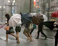 Tokyo (AFP) Sep 05 2005 One person was killed, another was missing and at least six were injured as a powerful typhoon heading Monday toward Japan's mainland lashed Tokyo with torrential rains, flooded homes and cut off power to thousands. A 61-year-old man was found dead late Sunday on a flooded road in Saitama outside Tokyo after he rushed to help his son whose car was stuck, police said. On Japan's main southern island of Kyushu, a 53-year-old man went missing as his house was crushed by a landslide. At least six people were injured on Kyushu and on the Okinawan chain further south, the National Police Agency said, as Typhoon Nabi slowly churned northwest along the edge of the East China Sea. The storm center, packing winds of up to 162 kilometers (100 miles) per hour, was located some 150 kilometers (90 miles) off Kyushu's southern tip at 10:00 pm (1300 GMT), the Meteorological Agency said, The agency said over 100 millimeters (four inches) of rain was dumped on Tokyo overnight, disrupting late night train services as hot air from the typhoon stimulated a seasonal rainfront over the capital. Nearly 2,000 homes were flooded by the powerful storm and 7,000 households were left without electricity in the Tokyo area, police said. Public broadcaster NHK said that 345 domestic flights were grounded on Monday across Japan. The typhoon was moving at 10 kilometers (six miles) per hour and was expected to hit Kyushu early Tuesday, a Meteorological Agency official said. With news of the typhoon competing on television with scenes of the US Gulf Coast devastated by Hurricane Katrina, authorities called on Kyushu residents in Nabi's path to consider leaving before the typhoon hits. In southern Kyushu, 13,000 people voluntarily evacuated their homes for schools while 19,300 lost power Monday, local officials said. The Tokyo area is accustomed to the downpour from typhoons in the Pacific Ocean but some residents said they had rarely felt such a pounding. Late-night trains took on the look of rush hour, with throngs of wet Tokyoites trying to get home on trains that were delayed when gushing waters flooded some tracks. "I have never experienced such a heavy rain in my five years living here," a man in his 40s told NHK. A man in his 30s said he went onto his rooftop for safety because he could not leave his house. "Water was almost reaching the second floor. I was really frightened," said a woman in her 50s. Japan was hit by Typhoon Mawar last month, which brought heavy rains and fierce winds that left at least one person dead and injured four others. The country was struck by a record 10 typhoons last year. One of them, Tokage, was the deadliest typhoon in a quarter-century, killing 90 people. All rights reserved. � 2005 Agence France-Presse. Sections of the information displayed on this page (dispatches, photographs, logos) are protected by intellectual property rights owned by Agence France-Presse. As a consequence, you may not copy, reproduce, modify, transmit, publish, display or in any way commercially exploit any of the content of this section without the prior written consent of Agence France-Presse. Related Links TerraDaily Search TerraDaily Subscribe To TerraDaily Express