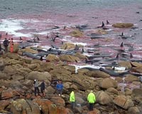 Sydney (AFP) Dec 1, 2008 More than 150 whales have died after beaching themselves in southern Australia, with many sustaining deep cuts after thrashing onto rocks, an official said Monday. The long-finned pilot whales were discovered trapped on a rocky beach in the remote west coast of Tasmania state on Saturday but early aerial reports suggested that only 72 had died. Subsequent investigations revealed that many more of the giant animals had perished, Warwick Brennan from the state's Department of Primary Industries and Water said. "155 are dead," Brennan told AFP, adding that 32 more animals had been successfully shepherded offshore and had a good chance of survival. Brennan said many of the whales had been badly injured after thrashing heavily on the rocky shore of Sandy Cape. The beaching follows the deaths of more than 50 pilot whales, deep water animals which can reach more than seven metres (20 feet) in length and weigh up to three tonnes, after they became stranded on a nearby beach the previous weekend. Brennan said Australia's southern island of Tasmania often experienced whale beachings, a phenomenon so far unexplained by science. "We get a bit nervous when they come into shore," he said. Since 1900 there have been 75 whale strandings recorded in Tasmania, which accounts for 80 percent of such events in Australia, with several involving more than 200 animals, Brennan said. Share This Article With Planet Earth