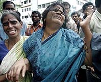 Chennai, India (AFP) Dec 18, 2005 At least 45 people, mostly women, were killed and more than 50 injured Sunday in a stampede for food coupons at a flood relief camp in the southern Indian city of Chennai, officials said. More than 3,000 people affected by floods had gathered at a government school in the Tamil Nadu state capital to collect food coupons early Sunday, an official said. A police official told AFP 45 people were killed and around 50 injured. The government, however, put the death toll at 42. "Forty two people have died in this tragic incident," Tamil Nadu state Chief Minister J. Jayalalithaa said. "I spoke to survivors and I asked them what they were doing so early in the morning since the relief coupons were to be distributed from 7:00 am and they said they were told to go early because very few coupons were left," she said. Jayalalithaa said the state would pay the victims' families 100,000 rupees (2,212 dollars) in compensation and ordered a judicial enquiry into the incident. "This is a very tragic incident and I express my condolences." Witnesses said there was a scramble to enter the school three hours before the scheduled opening of coupon counters when the crowd mistook a group of approaching policemen for relief workers. "Suddenly it started raining heavily and there was a mad scramble to get in. As the lock on the main door snapped, those in the front got crushed by the jostling crowd behind them," said witness Dhanalakshmi, who uses only one name. Most of the victims were women, administration officials said, adding that a separate police investigation was also ordered into the tragedy. Heavy rain delayed the rescue work. "It was raining so heavily that it was difficult to make out who was dead and who was injured," a rescuer said from the site which was littered with empty bags people had brought in the hope of collecting relief material. Two of the city's main hospitals, Government and Royapettah, where the injured were taken, were swamped by police and angry relatives. Women wailed in the corridor of the Government General Hospital while policemen taking the dead to the morgue looked shaken. At the site of the stampede one person recounted a lucky escape. "I came here to get coupons for my family as my daughter had just given birth to a baby. I was lucky that I got delayed because of the rains," said Mangamma, who had just reached the spot when the stampede happened. The injured and relatives of the dead were enraged. "The authorities should have taken more measures. This is the second such incident in two months," said Murugesan at the Government General Hospital to see his injured wife. It was the second stampede since the government opened around 150 relief centres to distribute food to thousands of people after heavy rains lashed the region in October, causing floods that destroyed homes. Last month, six people were crushed to death as a crowd rushed to collect 2,000 rupees (44 dollars) in cash, food and clothes being distributed by the authorities. Officials, however, pleaded helplessness. "What could we have done if people started lining up earlier? Four policemen who were there at the time were enough to man the crowd. After all, this is not a riot situation," said relief worker Rajendran.