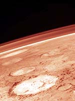 Moffet Field CA (SPX) Jan 31, 2005 Jean-Loup Bertaux, of the Service d'Aeronomie du CNRS in France, is Principal Investigator for the spectrometer instrument onboard the ESA's Mars Express orbiter. His SPICAM instrument team detected a night glow on Mars, and they have now published their discovery in the January 28th edition of the journal Science. He sat down with Astrobiology Magazine editor Leslie Mullen to discuss this new finding, and describe how it could aid future missions to Mars. Astrobiology Magazine (AM): Let's talk about the paper you just published in the journal Science. Jean-Loup Bertaux (JLB): Our paper is about light that was discovered on the night side of Mars. Up to now, there has been no detection of this natural light, or "air glow." It has been seen on the day side of Mars by Mariner 6, 7 and 9 in the ultraviolet, but there were no observations of the night side. AM: How is this kind of light produced? JLB: One way is through chemically produced emissions. That occurs in the atmosphere of the Earth, and has been seen in the atmosphere of Venus, and we have discovered for the first time it happening in the atmosphere of Mars. AM: So the night glow is due to chemical reactions occurring in the atmosphere. JLB: Yes. There are several mechanisms, but the one I am talking about is an emission that is produced when one atom of nitrogen is combining with one atom of oxygen to form a new molecule called nitric oxide, NO. When it recombines, it emits one photon. This photon may have several different wavelengths, but the wavelengths of these photons are quite typical of this nitric oxide molecule. There had been similar observations of the planet Venus in the 1980s, first with the International Ultraviolet Explorer telescope, by Paul Feldman and colleagues at Johns Hopkins, and with the Pioneer Venus UV spectrometer, by Charlie Barth and his associates at the University of Colorado. The mechanism of producing that spectrum was already understood at that time, and now we see the same thing happening in the atmosphere of Mars. So, what is happening? Why do you have this kind of emission? It's because in the upper atmosphere of Mars, on the day side, you have nitrogen molecules, N2. You have also oxygen molecules, O2. They are not the major constituents of the atmosphere, but still, they are there. They are then photo-dissociated by extreme ultraviolet light into nitrogen atoms and oxygen atoms. They do not recombine until they sink down in the atmosphere, because when they go down the density is increasing. The increase in density results in an increase in the number of recombinations. And each time you have a recombination of nitrogen and oxygen atoms, one photon is emitted. On Mars, we find that the emission is at an altitude between 60 and 80 kilometers. This is proof of air moving down, but not just anywhere - it happens at high southern latitudes, at a place that was always dark at the time we made our observations. When we found this emission, it was winter in the southern hemisphere, so the whole south pole region was totally in the dark. It is so cold at this time that even the atmosphere of Mars - the carbon dioxide - is freezing and forming a layer of frozen carbon dioxide around the South Pole. This frozen carbon dioxide layer has been measured to be about 1 meter thick. You have all this carbon dioxide air coming down there and condensing, and you must have some air coming in to replace that condensed air. So the light emission shows there is a flow of air coming down from the high altitudes, going down just above the South Pole. This gives us an optical way to detect the airflow circulation of Mars. It is not so easy to understand atmospheric circulation, because you need some wind measurements, and we don't have many wind measurement instruments on Mars. We have a few on ground stations, but nothing at high latitudes. So this technique is going to allow us to better study the circulation of the atmosphere of Mars. That's quite important from a technological point of view, because if you want to put something on the ground you have to do what is called an EDL - entry, descent, and landing. The probe has to go through the atmosphere with the use of parachutes, and then land. You can use the atmosphere as a kind of capturer of the spacecraft by using aerocapture or aerobraking. But you need to know how the atmosphere is behaving to really use those techniques. We have general circulation models of the atmosphere, but I would say these models are not fully validated. Indeed, our study is one way to validate the models. AM: You said the nitric oxide is coming from the photo-dissociation of O2 molecules high up in the atmosphere. Where is the oxygen coming from? From the photo-dissociation of water? JBL: A little bit, but O2 is also produced by the dissociation of carbon dioxide in the upper atmosphere - that is the major source. So you have a continuous production of oxygen atoms and oxygen molecules. AM: Is there anything that your discovery tells us about martian present day conditions or past conditions that we didn't know before? JBL: We are really learning something about the present conditions. It proves that there are nitrogen atoms, but we already knew that. What is surprising is the way the atmosphere goes from the sunny side to the dark side. Apparently, it goes in a pattern that favors the descent of air near the South Pole. According to models, the flow will be much larger in the reverse situation, when it is winter in the North Pole. So we would expect to see a much larger emission at the North Pole when it is winter there. There is a difference between the northern and southern winters because the orbit of Mars is eccentric. When it is winter at the South Pole, Mars is very far away from the sun, and when it is winter at the North Pole, Mars is near the sun. AM: When you talk about the displacement of air coming down, I visualize wind rushing in to fi