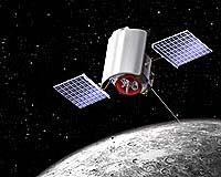 Pasadena - November 19, 2001 Our lack of knowledge about the planet that the Greeks called the "winged messenger" is about to change. The Messenger probe, a NASA Discovery mission built by the Applied Physics Lab (APL), will launch on a Delta II heavy in April 2004 and enter into orbit around Mercury in April 2009. The name MESSENGER stands for "MErcury Surface, Space ENvironment, GEochemistry and Ranging mission." Its mission will last one Earth year, which is equal to about 4 Mercury years, which is equal to only 2 Mercury days. Of all the terrestrial planets, Mercury is the one we know the least about. The one and only spacecraft ever sent to the smallest and densest of the terrestrial worlds was Mariner 10, launched back in November 1973. Mariner 10 was a two-for-one deal. It flew by Venus first for a gravity assist and then on to Mercury. But Mariner 10 was only able to capture data from half of Mercury on its three flybys in 1974 and 1975. Approved by NASA in 1999, the $300 million Messenger spacecraft will seek to answer basic questions about Mercury's high-density core, magnetic field, geologic history, unusual materials at the poles, and the types of volatiles that exist on the surface. "To get to Mercury, the 2004 opportunity is the best one in many years," says Dr. Robert Gold, Messenger Project Scientist at the Applied Physics Laboratory (APL). "We have a prime mission and a backup mission both in 2004. The next chance we would have to get there with this launch vehicle and this payload would be a 2012 launch. So we must go in 2004." On its way to Mercury, Messenger will use the gravity of both inner planets to slow itself down for the 2009 Mercury orbit insertion. Messenger will fly by Venus in 2004 and 2006, and Mercury in 2007 and 2008. The two flybys will give Messenger a chance to study Mercury's surface, atmosphere, and magnetosphere. Before it goes into orbit in 2009, the spacecraft will have mapped almost the entire surface of Mercury in color, including the parts unseen by Mariner 10. "Mariner 10 is the only view we have ever had of Mercury beyond a dot of light in a telescope," says Gold. "I've been interested in Mercury ever since I knew that it had a magnetic field." But, he never thought he'd be lucky enough to send a spacecraft to study Mercury. When Mariner 10 flew by Mercury it had just enough time to spot a glimmer of the planet's magnetic field. "It seemed too strong to be just the interaction of the solar wind and the planet," Gold says. "I think the chances are good that there is a fluid layer, but we'll find out." Gold says that Mercury's magnetic field probably froze into place as the material of the planet solidified billions of years ago. This process may be similar to what caused the magnetic fluctuations on Mars that were detected by the Mars Global Surveyor. It's also possible that Mercury may have a fluid core or layer moving to form a dynamo. "The base theories say that if you just have an iron core, it should have solidified in under a billion years," says Gold. "But, if you have enough sulfur or another element that was mixed with the iron, you might form a eutectic that would be able to remain liquid to a much lower temperature. And that might be a thin shell around a solid iron core." Messenger will study Mercury with several instruments, the Mercury Dual Imaging System (MDIS), Gamma-Ray and Neutron Spectrometer (GRNS), Magnetometer (MAG), Mercury Laser Altimeter (MLA), Radio Science (RS), Atmospheric and Surface Composition Spectrometer (ASCS), Energetic Particle and Plasma Spectrometer (EPPS) and an X-Ray Spectrometer (XRS). Production began in July of this year and the instruments are scheduled to be delivered by February 5th 2003. The main issue is heat. "350 degrees, that's pizza oven temperature," says Gold. "As long as you can hide behind your thermal shade, you manage to survive. And using that ceramic cloth was one of the key ideas that made this possible." "By using the combination of the thermal shade, the diode heat pipes to special radiators on the side, and other things, we're going to keep the body of the spacecraft inside the region, normally room temperature to plus 40," says Gold. "Which means we can do one of the things that has been stopping a mercury mission before this. We can do without special high temperature electronics." The mission requires a large fuel fraction of 65%. Since Discovery missions are not allowed to launch on anything larger than a Delta II, this really limits the payload. "We've had to apply miniaturization principles wherever we could," says Gold. "It's a little hard when you have to purchase components. We only wish we had more money to pay people to miniaturize things, but you can't do that on a Discovery budget." So, why choose to send an orbiter to Mercury? Gold explains, "You get a lot more science from an orbiter [along with] the problems of an orbiter. Getting to that part where you are in front of the planet [with sunlight from both sides] is so daunting that people are very afraid of it for good reason. It's not easy." There are several layers of ceramic cloth in the sunshade on top of 20 layers of kapton thermal blanketing, which allow the spacecraft to withstand temperatures of 360 degrees centigrade. "By the time the heat gets all the way through the radiation stopping, it's about 100 degrees centigrade at the back of the thermal shade," says Gold. There is a gap between that and the spacecraft, which sits at 25 degrees centigrade, about room temperature." Including fuel tanks, the Messenger spacecraft measures about 4 feet tall by 4 feet wide, and about 3 feet deep. Add on the thermal shade and the size increases to 6 1/2 feet tall. Working on a Discovery mission has its advantages and disadvantages. "Although it's very intense, although you end up working lots of hours, it's in many ways very fulfilling because you don't waste months and years waiting for decisions to be made. You know 