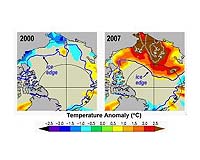 Seattle WA (SPX) Dec 13, 2007 Record-breaking amounts of ice-free water have deprived the Arctic of more of its natural "sunscreen" than ever in recent summers. The effect is so pronounced that sea surface temperatures rose to 5 C above average in one place this year, a high never before observed, says the oceanographer who has compiled the first-ever look at average sea surface temperatures for the region. Such superwarming of surface waters can affect how thick ice grows back in the winter, as well as its ability to withstand melting the next summer, according to Michael Steele, an oceanographer with the University of Washington's Applied Physics Laboratory. Indeed, since September, the end of summer in the Arctic, winter freeze-up in some areas is two months later than usual. The extra ocean warming also might be contributing to some changes on land, such as previously unseen plant growth in the coastal Arctic tundra, if heat coming off the ocean during freeze-up is making its way over land, says Steele, who is speaking Wednesday at the American Geophysical Union meeting in San Francisco. He is lead author of "Arctic Ocean surface warming trends over the past 100 years," accepted for publication in AGU's Geophysical Research Letters. Co-authors are physicist Wendy Ermold and research scientist Jinlun Zhang, both of the UW Applied Physics Laboratory. The work is funded by the National Science Foundation. "Warming is particularly pronounced since 1995, and especially since 2000," the authors write. The spot where waters were 5 C above average was in the region just north of the Chakchi Sea. The historical average temperature there is -1 C - remember that the salt in ocean water keeps it liquid at temperatures that would cause fresh water to freeze. This year water in that area warmed to 4 C, for a 5-degree change from the average. That general area, the part of the ocean north of Alaska and Eastern Siberia that includes the Bering Strait and Chukchi Sea, experienced the greatest summer warming. Temperatures for that region were generally 3.5 C warmer than historical averages and 1.5 C warmer than the historical maximum. Such widespread warming in those areas and elsewhere in the Arctic is probably the result of having increasing amounts of open water in the summer that readily absorb the sun's rays, Steele says. Hard, white ice, on the other hand, can work as a kind of sunscreen for the waters below, reflecting rather than absorbing sunlight. The warming also may be partly caused by increasing amounts of warmer water coming from the Pacific Ocean, something scientists have noted in recent years. The Arctic was primed for more open water since the early 1990s as the sea-ice cover has thinned, due to a warming atmosphere and more frequent strong winds sweeping ice out of the Arctic Ocean via Fram Strait into the Atlantic Ocean where the ice melts. The wind effect was particularly strong in the summer of 2007. Now the situation could be self-perpetuating, Steele says. For example, he calculates that having more heat in surface waters in recent years means 23 to 30 inches less ice will grow in the winter than formed in 1965. Since sea ice typically grows about 80 inches in a winter, that is a significant fraction of ice that's going missing, he says. Then too, higher sea surface temperatures can delay the start of freeze-up because the extra heat must be discharged from the upper ocean before ice can form. "The effect on net winter growth would probably be negligible for a delay of several weeks, but could be substantial for delays of several months," the authors write. Community Email This Article Comment On This Article Related Links University of Washington Beyond the Ice Age