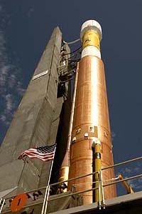Cape Canaveral - Aug 21, 2002 The first Atlas V launch vehicle, designated AV-001, stands ready to make history today for International Launch Services (ILS), Lockheed Martin Corp. and the U.S. space launch industry. Liftoff is scheduled for 6:05 p.m. EDT, with the launch window extending until 7:34 p.m. (22:05 to 23:34 GMT). Launch will take place from Lockheed Martin's new facilities at Cape Canaveral's Launch Complex 41. The Atlas V will carry the HOT BIRD 6 broadcast satellite for Eutelsat. The Atlas V, produced by Lockheed Martin Space Systems Co., is the latest generation in long line of reliable rockets. The Atlas family has a string of 60 successful launches over the last nine years. "This mission continues the Atlas tradition of always carrying a customer on a first flight," said Mark Albrecht, president of ILS, which provides the launch services on the Atlas. "We are committed to mission success, as evidenced by Atlas' enviable record. All Atlas variants - Atlas I, II, IIA, IIAS, III - have had successful inaugural missions." Albrecht added, "Once again Eutelsat demonstrated its confidence in ILS and the Atlas family by signing up to be the customer for the first launch of an Atlas variant. Our long and mutually successful relationship goes back to the beginning of the Atlas commercial space program, when Eutelsat was the first customer for the Atlas II, launched in December 1991. Eutelsat also was the first to use the Atlas III rocket, which flew successfully in May 2000." HOT BIRD 6 is the most powerful satellite to be launched for Eutelsat. It is an Alcatel Spacebus 3000B3 satellite carrying 28 transponders at Ku-band and 4 at Ka-band, as well as a SKYPLEX payload for on-board multiplexing. It will be used to provide television and radio broadcast services. The HOT BIRD satellites are positioned at 13 degrees East longitude and deliver 600 television channels and 475 radio services across Europe, North Africa and the Middle East. This is the most powerful version of Atlas launch vehicles, and the sixth configuration introduced, illustrating Lockheed Martin's commitment to being the preeminent launch system provider in the United States. ILS is a joint venture of Lockheed Martin and two Russian companies, Khrunichev State Research and Production Space Center and RSC Energia. ILS markets and manages the missions for the Atlas and the Russian Proton vehicles. The Atlas V family is designed to lift payloads up to nearly 8700 kg to geosynchronous transfer orbit (GTO). It was developed both for ILS commercial missions and to meet the U.S. Air Force requirements for the Evolved Expendable Launch Vehicle (EELV). The Atlas V incorporates state-of-the-art designs, materials and processes, including the throttleable, Russian-built RD-180 engine, the first variable-thrust main engine to power a U.S. expendable launch vehicle. The RD-180 and most of the other technologies for Atlas V were flight-proven in 2000 on the inaugural Atlas III mission. To support Atlas V missions, Lockheed Martin built a state-of-the-art launch complex at Cape Canaveral. The new site introduces the "clean pad" concept to U.S. launch capabilities for the first time, and consolidates the support operations into two facilities: the Atlas Spaceflight Operations Center (ASOC) and the Vertical Integration Facility. The clean pad concept allows the Atlas V vehicle to be assembled, tested and mated with the encapsulated spacecraft away from the pad, thus allowing more flexibility in meeting customer needs. The ASOC combines the Launch Operations Center, a high bay for vehicle processing, office space for mission support and customer hospitality rooms. ILS offers the broadest range of launch services in the world along with products with the highest reliability in the industry. ILS' Atlas rockets and their Centaur upper stages are built by Lockheed Martin Space Systems Co. -- Astronautics Operations at facilities in Denver, Colo.; Harlingen, Texas; and San Diego, Calif. The three-stage Proton and the available Breeze M upper stage are produced by Khrunichev at its factory near Moscow. The alternative Block DM upper stage is built by Energia, also near Moscow. Related Links Atlas 5 Maiden Launch SpaceDaily Search SpaceDaily Subscribe To SpaceDaily Express ![]() ![]() The first Atlas V launch vehicle scored a triumph for builder Lockheed Martin Corp. and launch provider International Launch Services (ILS) today, placing its satellite payload into orbit with a flawless flight. |