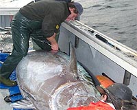 Paris (AFP) Nov 27, 2010 Fishing nations opted Saturday to leave catch limits for eastern Atlantic bluefin tuna virtually unchanged despite concerns that the species is perilously close to collapse. Annual quotas for the sushi mainstay will be trimmed from 13,500 tonnes this year to 12,900 tonnes in 2011, the 48-member International Commission for the Conservation of Atlantic Tunas (ICCAT) decided at the close of a 10-day meeting in Paris. Some nations here favoured a much lower cap, or even a suspension of fishing, to ensure bluefin's long-term viability. But industry representatives and the governments that back them insisted the new catch limits were sufficient. "They will make it possible to reach maximum sustainable yield by 2022, which represents a balance between respecting natural resources and preserving the social-economic fabric," said Bruno Le Maire, France's agriculture and fisheries minister in a statement. ICCAT scientists calculate that the new catch levels will put eastern Atlantic bluefin on track for a 70 percent chance of reaching sustainability by that date. The same scientists, however, caution that the data upon which these estimates are based is spotty at best, while conservationists counter that a 30 percent risk of failure is too high. The head of the Japanese delegation, Masanori Miyahara, told AFP he was satisfied with the outcome, but said stronger compliance measures were needed. "The actual catch level will be around 11,000, which is a large reduction off current levels," he added, noting that some members had pledged not to use up their quotas. Japan is the world's top consumer of bluefin buying up more than 80 percent of all the fish taken from the Mediterranean and eastern Atlantic. The United States, which had pushed for a sharper reduction, expressed disappointment. "I can't say that we acted in as precautionary a manner as I would have liked," said Russell Smith, a Department of Commerce official and head of the US delegation. Currently, eastern Atlantic bluefin are at 85 percent of historical levels and 30 percent of "maximum sustainable yield", the target for recovery. Green groups reacted angrily. "This outcome confirms that the bluefin's days are numbered and has demonstrated ICCAT's inability to act on its own mandate," said Greenpeace International oceans campaigner Oliver Knowles. "The word 'conservation' should be removed from ICCAT's name." Going into the meeting, the European Union -- allocated more than half the annual catch -- was sharply divided. Fishing nations led by France pushed to maintain the status quo, even as the EU fisheries commissioner Maria Damanaki said they should be slashed to 6,000 tonnes. A backdoor attempt by France, meanwhile, to stretch out payments of its "tuna debt"-- incurred in 2007 when it surpassed a national quota of 5,000 tonnes by more than 100 percent -- failed. A proposal submitted on its behalf by Morocco was shot down in the final plenary. As things stand, France's bluefin haul for 2011 could drop from about 2,000 to 500 tonnes, barely enough to keep a handful of commercial vessels busy during the one- or two-month long fishing season. Sue Lieberman of the Pew Environment Group said current quotas did not take into account ICCAT's history of mismanagement. "It ignores all the evidence of fraud, illegal fishing and laundering," she said. The 30-page "recovery plan" adopted by ICCAT includes several new measures to combat these problems, including a Japanese proposal whereby each country's ability to monitor and police its catches would be first submitted to ICCAT's compliance committee for approval. "We have to do many things to ensure compliance before the fishing season starts," Miyahara said. The plan also bans for the first time multi-nation fishing operations by countries with sizable tuna fleets, a technique that has been used to disguise excess catches.