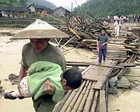 Beijing (AFP) Jun 05, 2005 The death toll from torrential rains and the start of annual summer flooding in China rose to 204, with 79 others missing, state media reported Sunday, citing government figures. "Based on the Ministry of Civil Affairs' preliminary statistics, due to flooding from 16 provinces, cities and autonomous regions, 17.06 million people were affected, 204 died and 79 are missing," the Xinhua news agency said. The seasonal floods have also affected 1.8 million hectares (4.4 million acres) of farmland, completely destroying 614,000 hectares, it said. Governments at all levels across the country have been ordered to mobilize manpower and resources to battle the floods, in particular to prevent major rivers and reservoirs from being breached. Measures should be taken to reduce human casualties and property losses to a minimum, Xinhua cited Vice Premier Hui Liangyu saying during a meeting of the State Flood Control and Drought Relief Headquarters on Saturday. Hui, who is also chief of the headquarters, said the safety of major cities and preservation of communication lines must be ensured. Heavy loss to lives and property occur each year during the flood season. Related Links SpaceDaily Search SpaceDaily Subscribe To SpaceDaily Express