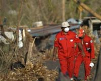 Guinobatan (AFP) Dec 08, 2006 Medical aid was rushed to squalid Philippine evacuation sites Friday amid dire warnings that poor sanitation could trigger an outbreak of disease among hundreds of mudslide survivors. Babies and children sleep on the damp wooden floors of the elementary school turned into a temporary shelter for nearly 100 families in the township of Guinobatan in the eastern Bicol region, where entire villages were swept away by volcanic debris last week. Yet these unfortunates are relatively lucky. When supertyphoon Durian hit last week, it created avalanches of volcanic mud that left more than 1,300 people dead or missing. Sixteen-year-old mother Jennifer Pamplona is struggling to breastfeed her two-week-old baby, Sofia Jane, swaddled in a soiled canvass doubling as a diaper. "She is not eating. She has been crying and has been feverish," Pamplona said, as husband, Radji, 20, sat dazed in a corner. "She was a week old when the mudslide struck and our house was instantly gone." Nearby, children walk in their bare feet, their faces full of grime as they await daily rations of boiled noodles and fish. An elderly man who is visibly sick sits in one corner, just yards away from another mother and her children huddled over a piece of bread. "Water is a huge problem, the toilets are filled to capacity and we don't have portable ones. There are so many children that are sickly now, and we can't continue to live like this," said Jun Espinas, 35, an engineer. "The government must now start looking for relocation sites because we can't return to our village. It is gone," he said. "We are desperate for medicines and infant formula," he said. A disease surveillance team from the Department of Health was dispatched here to assess the situation and try to prevent an outbreak that could be fatal in these crowded communities. They administered anti-measles and polio vaccines to children as well as gave them boosters to counter the common cold. "There have been rising incidences of acute respiratory infections and loose bowel movements," said team leader Nancy Pastrana. "The condition here is congested, this is a common breeding ground for diseases," she said, as she struggled to inject a vaccine into a crying three-year-old girl. The elementary school was partially damaged when tonnes of volcanic debris cascaded down the slopes of Mayon volcano at the height of the typhoon last week, burying entire villages and leaving hundreds dead and missing. Rehabilitation work has been excruciatingly slow, and while road networks are already open, huge delivery trucks containing relief aid have not been able to fully penetrate far-flung areas. More than a week after the incident, bodies are still being dug from the rubble and quickly buried in mass graves not far from excavation sites. Forensic experts have been exhuming bodies elsewhere to properly tag and identify them, while health officials have rushed to teach villagers proper ways of "managing the dead". The World Health Organization issued an advisory saying mass burials were not necessary at disaster sites because the corpses were unlikely to become the sources of disease outbreaks. However many communities resorted to the burials anyway because the stench of the bodies has become too unbearable. Electrical, communications and water services in most stricken areas still have not been restored. People have resorted to using deep wells and springs for potable water.