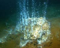 Bremen, Germany (SPX) Sep 27, 2006 During an expedition off the South American coast, an international team of ocean scientists discovered that the gases ethane and propane are widespread, and are being produced by microorganisms in deeply buried sediments. Prof. Kai-Uwe Hinrichs (Research Center Ocean Margins, University of Bremen), co-author Prof. John Hayes (Woods Hole Oceanographic Institution), and colleagues report new findings on the production of energy-laden gases in a paper in this week's online edition of the renowned Proceedings of the National Academy of Sciences of the U.S.A. (PNAS). The findings suggest that microbes in the deeply buried, vast ecosystem below the seafloor carry out hitherto unrecognized processes, which are highly relevant to both our understanding of global element cycles and the metabolic abilities of Earth's microbial biosphere. "In a way, the finding was coincidental," Hinrichs states. Onboard the research drilling vessel JOIDES Resolution, the geochemist, now at the University of Bremen but then at Woods Hole Oceanographic Institution (WHOI), analyzed the gases in sediments buried up to 400 meters in the Equatorial Pacific off Peru. "We were swamped with samples: in nearly a thousand samples of up to 40 million-year-old sediment, we analyzed the gas content." Despite work shifts of up to 14 hours, the shipboard scientists soon had a backlog of unanalyzed samples, which turned out to be lucky. "When we later looked at the samples, we noticed that concentrations of ethane and propane were suspiciously high," Hinrichs adds. Soon the scientists realized that these gases were not artifacts or contaminants, but that they must have slowly escaped from the sediment. The researchers began to wonder how to account for the presence of these gases. Normally, ethane and propane are known as typical products of fossil fuel generation at elevated temperatures and pressure, without direct involvement of microbes. In the PNAS article, the team argues that microbes played a key role in the formation of these hydrocarbons. "Sediments contain organic material (the fossil remnant of oceanic plants and animals)," Hinrichs explains. "This material, a key ingredient in the carbon cycle, is the major food used by the deep biosphere. During its decomposition by microbes, acetate--the ionic form of acetic acid--is formed. We think that bacteria use hydrogen to convert acetate into ethane. Addition of inorganic carbon and hydrogen provides a route to propane." In support of their hypothesis for a biological origin of the gases, the researchers point to several clues: "First, the sampling locations are remote from reservoirs of oil and natural gas, so that this source can be eliminated," Hinrichs says. "Moreover, the abundance of stable isotopes of carbon are markedly different from those in gases formed at high temperature," adds co-author John Hayes, a geochemist at Woods Hole Oceanographic Institution (WHOI). Co-author Wolfgang Bach, geochemist and professor at the Bremer Research Center points out, "We also were able to demonstrate that under the conditions prevailing at depth, these processes could yield just enough energy for growth of bacterial communities." The paper leads to several new questions that will be addressed in future work. In a current PhD project in the Organic Geochemistry Group at the Research Center Ocean Margins, experiments are being conducted to locate the sedimentary sites where the gases are hidden. "Interlayer spaces of clay minerals are the best candidates right now," Hinrichs says. Other experiments are currently being designed to find out more about how the gases are being formed. He adds, "One important goal right now is to study these processes under controlled conditions in the lab to verify or refine the proposed mechanism." Hinrichs knows that it may not be easy to simulate processes from the deep biosphere, but the geochemist hopes to identify and replicate the conditions needed to stimulate the microbes to produce a lot of these energy carriers. Related Links Research Center Ocean Margins, University of Bremen Woods Hole Oceanographic Institution Darwin Today At TerraDaily.com