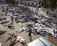 Port-Au-Prince (AFP) Jan 17, 2010 Despairing Haitians prayed in church ruins Sunday as rescuers raced against time to unearth quake survivors and the UN vowed to speed up desperately needed supplies of food, water and medicine. The government said 70,000 bodies had been buried in mass graves since the 7.0 earthquake flattened much of the impoverished Caribbean nation on January 12, triggering a massive humanitarian crisis. Officials fear the eventual death toll could top 200,000. Survivors were besieging hospitals and makeshift clinics, some carrying the injured on their backs or on carts, and violence flared as police tried to stop looting in a city market. The stench of burning bodies hung over slums clinging to a Haitian hillside as residents abandoned the search for survivors and torched the squalid ruins. Lieutenant-General Ken Keen, who is running the vast US military relief operation, said 200,000 might be a possible "start point" for the final death toll, but that it was too early to know. "Clearly, this is a disaster of epic proportions, and we've got a lot of work ahead of us," he said. After hours of painstaking digging, a team from Florida unearthed a seven-year-old girl, a man aged 34 and a 50-year-old woman in the mangled wreckage of a supermarket in the ravaged capital Port-au-Prince. Australian news crews reported putting aside their day jobs to rescue an 18-month-old baby after hearing her cries from underneath the rubble in Port-au-Prince as she lay trapped next to the bodies of her dead parents. "And then, out of the ruins came this little girl, and I will never forget it," Nine Network reporter Robert Penfold told The Australian newspaper. "She did not cry. She looked astonished, almost as if she was seeing the world for the first time." A Danish man was pulled unscathed from the flattened UN mission, but rescuers knew the likelihood of finding more survivors was waning with every hour. "Today is the last day that I think we will be able to find survivors, mainly because of dehydration," said Rami Peltz, a rescuer with an Israeli team. The church bells lay silent Sunday over the ruined capital, but the faithful still gathered in large numbers to pray for solace in the darkest hour of this deeply religious nation. "I want to send a message of hope because God is still with us even in the depths of this tragedy, and life is not over," said Father Henry Marie Landasse as he held mass in the rubble of the main cathedral. But with vital supplies of water and food still struggling to reach some of those most in need, many Haitians were close to despair. "Life is really hard, we have nothing," said 40-year-old Jean Osee, camped out with his family in front of the presidential palace in a makeshift slum of 50,000 wretched people. "I don't have much strength to feed him, I can't look after him properly," Osee's daughter Louisoguine said, cradling her curly-haired baby. Hundreds of rioters ransacked Hyppolite market in the heart of the capital. Police reinforcements descended on the market armed with shotguns and assault rifles and one rioter, a man in his 30s, was fatally shot in the head, an AFP photographer said. In the few medical facilities that are still standing in the city, there is not only a shortage of medication, but also of staff. "They are overwhelmed and bursting at the seams," the International Committee of the Red Cross said. The United Nations has estimated that the quake affected three million people -- one third of Haiti's population -- and left 300,000 homeless. Some 40 tent cities have sprung up in Port-au-Prince, according to the Red Cross. Some 280 emergency centers will be set up from Monday to distribute aid to victims and provide shelter for the homeless, a Haitian government source said. UN chief Ban Ki-moon vowed to accelerate aid efforts after flying over Port-au-Prince. "I am here to say we are with you. You are not alone. This is a tsunami-like disaster," he told a news conference. Ban was to fly back to New York later Sunday bearing the bodies of some of the 40 UN staffers killed when the UN mission in Port-au-Prince collapsed, in what has become the global body's worst tragedy ever. Canada announced that donor countries would meet in Montreal January 25 to discuss Haiti's reconstruction. Lieutenant-General Keen promised to redouble efforts after the US military distributed 70,000 bottles of water and 130,000 food rations on Saturday. President Barack Obama mobilized military reserves, particularly medical staff to work on hospital ships. Another 7,500 military personnel were due by Monday to join 5,800 US forces already on the ground or in ships off Haiti. On a visit to Haiti Saturday, US Secretary of State Hillary Clinton said: "As President Obama has said, we will be here today, tomorrow and for the time ahead."