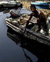 Beirut (AFP) Aug 27, 2006 Israel's war against Hezbollah has brought disaster to Lebanon's fishermen, stricken by a massive oil spill on the country's shores, as well as heavily damaged boats and a continuing naval blockade. Dozens of fishermen can be seen lingering in the small ports that dot the coastline, desperately surveying their idle craft and the oil slick caused when Israel bombed a power plant near Beirut in mid-July, destroying storage tanks and spilling up to 15,000 tonnes of fuel into the Mediterranean. The slick, described as the country's worst-ever environmental disaster, has polluted an estimated 150 kilometers (93 miles) of coastline. But while the focus has so far been on the environmental crisis, little attention has been paid to the thousands of fishermen whose lives were shattered by the month-long war and who have yet to receive any compensation from the government. "It's been almost two months since any of us worked," said Mohammed Kniwa, head of the fishermen's union at the Raouche port in Beirut, where an estimated 150 tonnes of oil is trapped. The Lebanese army on Friday began pumping out the black sludge, which has coated the few boats still in the water as well as the rocks around the bay where stray cats with blackened legs and underbellies prowled. Kniwa, 63, said the only help the fishermen have received is a handout of 100 US dollars each and food parcels from the foundation representing Lebanon's slain ex-prime minister Rafiq Hariri. "No one from the government has even deigned to come talk to us," said a bitter Ahmad Itani, 55, who has been a fisherman since the age of 15. "I guess they will show up when it's election time." In the meantime, he and his fellow fishermen spend their time at the port playing cards or discussing politics and their plight. "I have been fishing for 30 years and now I'm reduced to taking handouts," lamented 66-year-old Samir Moussa. At the port in Uzai on the outskirts of south Beirut, where an entire fleet of 300 fishing boats was destroyed by Israeli bombardments in July, the fishermen's anger is palpable. Not only have they been affected by the oil spill and Israel's punishing air and naval blockade on Lebanon, but their boats have also been reduced to debris, they say. "My boat is gone, my livelihood is gone and all the government is doing is taking care of the tourist beaches rather than their own people," said 40-year-old father of six, Adel Zein El Din. Help at Uzai has come from the Shiite militant group Hezbollah, which gave each fisherman 150 dollars and some food. But the men say that while the handout is welcome, it will do little to ease the long-term financial burden caused by the war. Those with children say their kids will not be able to attend school this year because they cannot afford tuition fees or school supplies. "We wait all year for the summer season because that's when we can earn up to 35 dollars a day and that helps us to make it through the winter," said Saad El Din Jizay, 41. "But today we have nothing, and all we need is for the government to help us out until we can stand on our own two feet again," he said. He and others said that even those who venture out to fish near the coast are unable to sell their catch at the market because buyers are afraid of pollution. The many fish restaurants along the coast have also been hard hit. "The first thing customers do when they come in is ask if the fish is OK," said Elie al Ward, manager at Sultan Ibrahim, one of the Lebanese capital's best-known fish restaurants. "Our restaurant is usually full, but now we have more employees than customers," he added. Lebanon's Environment Minister Yacoub Sarraf told AFP that the government was still evaluating the damage caused by the spill and was studying a bailout package for the fishermen.