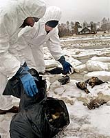 Tallinn (AFP) Feb 02, 2006 Estonian officials have narrowed down their search for the ship that caused a 35-kilometer (21-mile) oil slick that has killed at least 800 birds in the Baltic Sea, singling out a Liberian-flagged tanker as the possible culprit. "The oil tanker Flawless, which was on its way from Muuga port, near Tallinn, to Singapore, may be the tanker that polluted the Estonian coastline," Prime Minister Andrus Ansip told a press conference. Some 5,000 birds are feared to have died and more than 800 cadavers have already been recovered by environmentalists and volunteers since the long oil slick was first noticed off the coast of the Baltic state on Saturday. Ansip said the Flawless had reported last week to the coastguard that more than 1.5 tonnes of oil had been accidentally pumped to the upper deck of the ship on January 23 when it was loaded with its petroleum cargo. According to the prime minister, the coastguard passed the information to Environment Ministry inspectors, but the ministry did not take the matter any further. Environment Minister Villu Reiljan said he had heard nothing about any problems with the Flawless before the prime minister made public the information on Thursday. Reiljan said that eventual leaks from other oil tankers which passed off Estonia's northwestern coast near the scene of the environmental disaster were also being investigated as the possible cause of the slick.