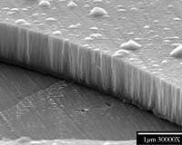 Buffalo NY (SPX) Sep 26, 2007 University at Buffalo chemists have developed a novel way to grow chemically pure, zinc oxide thin films characterized by dense, bristle-like nanostructures and a new method for depositing them on temperature-sensitive substrates, including polymers, plastics and tapes. The research, published online last month in the Journal of Physical Chemistry, may make possible the deposition of versatile zinc oxide films onto flexible surfaces, enabling the development of more efficient solar cells, liquid-crystal displays, chemical sensors and optoelectronic devices. The issue of the journal commemorates the career of Richard E. Smalley, a pioneer of nanotechnology, with whom the lead UB author, James F. Garvey, Ph.D., professor of chemistry, worked while on sabbatical in 1995. High-quality zinc oxide thin films are versatile and can be fabricated into many shapes, including films, nanorods and nanoparticles. However, there is a drawback: They usually are deposited at high temperatures, which can damage or even melt the substrate they are coating. "That makes it impossible to coat plastic, a hard drive, an electronic device or even contact lenses since the deposition process damages the underlying surface," Garvey said. By contrast, the UB researchers have developed a technique in which the metal oxide molecules are cool enough to safely coat temperature-sensitive substrates. The UB researchers grow the thin films by first reacting zinc metal and oxygen in the presence of a high power, electrical arc discharge. The method they developed, called Pulsed Arc Molecular Beam Deposition (PAMBD), strikes a discharge between two pure zinc rods. "This lightening-like discharge creates a bright, blue plasma five times hotter than the surface of the sun," Garvey said. At these high temperatures, the pure zinc metal is vaporized and reacts completely with an oxygen gas pulse to create chemically zinc oxide molecules. The gaseous zinc oxide is then sprayed through a tiny aperture, a process that results in cooling the expanding gas down to about 50 degrees Kelvin, he explained, allowing the beam of now cold metal oxides to safely coat even the most temperature-sensitive surfaces. "This is an enabling technology that will allow for the deposition of thin films on batteries, credit cards, on any flexible surface you have," Garvey said, adding that the UB process can use any metal and a wide array of different metal oxides can be produced easily. "Since it is a pulsed technique, the thickness of the resulting films can be precisely controlled," he noted. "In this way, our PAMBD source is really a high-temperature chemical reactor that generates metal oxide molecules on demand and then rapidly cools them down for subsequent coating of any surface." The chemists now are working with researchers in the UB Department of Physics to use the thin films and the deposition technique to create nanorods and spintronic devices. In addition to Garvey, co-authors on the paper are Chi-Tung Chiang, Ph.D., post-doctoral associate, and Robert L. DeLeon, Ph.D., adjunct associate professor, both in the Department of Chemistry in the UB College of Arts and Sciences. The research was funded by the Missile Defense Agency of the U.S. Department of Defense. Community Email This Article Comment On This Article Related Links University at Buffalo All About Solar Energy at SolarDaily.com