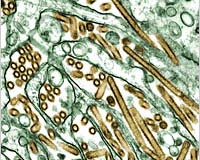 La Jolla CA (SPX) Mar 20, 2006 The H5N1 avian influenza virus, commonly known as "bird flu," is a highly contagious and deadly disease in poultry. So far, its spread to humans has been limited, with 177 documented severe infections, and nearly 100 deaths in Indonesia, Vietnam, Thailand, Cambodia, China, Iraq, and Turkey as of March 14, 2006, according to the World Health Organization. "With continued outbreaks of the H5N1 virus in poultry and wild birds, further human cases are likely," said Ian Wilson, a Scripps Research professor of molecular biology and head of the laboratory that conducted the recent study. "The potential for the emergence of a human-adapted H5 virus, either by re-assortment or mutation, is a clear threat to public health worldwide." Of the H5N1 strains isolated to date, the researchers looked at A/Vietnam/1203/2004 (Viet04), one of the most pathogenic H5N1 viruses studied so far. The virus was originally isolated from a 10-year-old Vietnamese boy who died from the infection in 2004. The hemagglutinin (HA) structure from the Viet04 virus was found to be closely related to the 1918 virus HA, which caused some 50 million deaths worldwide. Using a recently developed microarray technology-hundreds of microscopic assay sites on a single small surface-the study showed that relatively small mutations can result in switching the binding site preference of the avian virus from receptors in the intestinal tract of birds to the respiratory tract of humans. These mutations, the study noted, were already "known in [some human influenza] viruses to increase binding for these receptors." The study was published on March 16, 2006 by ScienceXpress, the advance online version of the journal Science. Receptor specificity for the influenza virus is controlled by the glycoprotein hemagglutinin (HA) on the virus surface. These viral HAs bind to host cell receptors containing complex glycans-carbohydrates-that in turn contain terminal sialic acids. Avian viruses prefer binding to ?2-3-linked sialic acids on receptors of intestinal epithelial cells, while human viruses are usually specific for the ?2-6 linkage on epithelial cells of the lungs and upper respiratory tract. Such interactions allow the virus membrane to fuse with the membrane of the host cell so that viral genetic material can be transferred to the cell. The switch from ?2-3 to ?2-6 receptor specificity is a critical step in the adaptation of avian viruses to a human host and appears to be one of the reasons why most avian influenza viruses, including current avian H5 strains, are not easily transmitted from human-to-human following avian-to-human infection. However, the report did suggest that "once a foothold in a new host species is made, the virus HA can optimize its specificity to the new host." "Our recombinant approach to the structural analysis of the Viet04 virus showed that when we inserted HA mutations that had already been shown to shift receptor preference in H3 HAs to the human respiratory tract, the mutations increased receptor preference of the Viet04 HA towards specific human glycans that could serve as receptors on lung epithelial cells," Wilson said. "The effect of these mutations on the Viet04 HA increases the likelihood of binding to and infection of susceptible epithelial cells." The study was careful to note that these results reveal only one possible route for virus adaptation. The study concluded that other, as yet "unidentified mutations" could emerge, allowing the avian virus to switch receptor specificity and make the jump to human-to-human transmission. The glycan microarray technology, which was used to identify the mutations which could enable adaptation of H5N1 into the human population in the laboratory, could also be used to help identify new active virus strains in the field by monitoring changes in the receptor binding preference profile where infection is active, according to according to Jeremy M. Berg, the director of the National Institute of General Medical Sciences (NIGMS), part of the National Institutes of Health (NIH). The glycan microarray was developed by The Consortium for Functional Glycomics, an international group led by Scripps Research scientists and supported by the NIGMS. "This technology allows researchers to assay hundreds of carbohydrate varieties in a single experiment," Berg said. "The glycan microarray offers a detailed picture of viral receptor specificity that can be used to map the evolution of new human pathogenic strains, such as the H5N1 avian influenza, and could prove invaluable in the early identification of emerging viruses that could cause new epidemics." Other authors of the study include James Stevens of Scripps Research; Ola Blixt of Scripps Research and Glycan Array Synthesis Core-D, Consortium for Functional Glycomics; Terrence M. Tumpey, Influenza Branch, Division of Viral and Rickettsial Diseases, Centers for Disease Control and Prevention; Jeffery K. Taubenberger, Department of Molecular Pathology, Armed Forces Institute of Pathology, and; James C. Paulson, Scripps Research and Glycan Array Synthesis Core-D, Consortium for Functional Glycomics. Related Links Scripps Research Institute World Health Organization