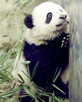 Washington (AFP) Nov 29, 2005 There was 'panda-monium' at Washington's National Zoo on Tuesday as fluffy giant panda cub Tai Shan cavorted for the cameras, in his first encounter with the media pack. The black and white cub, who is nearly five months old, went through his paces for five shifts of journalists and cameramen making up his panda paparazzi, stretching on rocks in the enclosure and hiding behind grass. He splashed through water in his pen and at one stage bounced back up after falling awkwardly off a small rock. Normally staid Washington has been swooning over Tai Shan, using a webcam posted inside his enclosure to keep tabs on the cute little cub, which now weighs 21 pounds (9.5 kilogrammes). "Some days he gets up really early, around four or five in the morning, and starts playing like crazy, climbing on his mother, climbing on the rocks," Panda Curator Lisa Stevens said on "The Early Show" on CBS. "Then other mornings, he sleeps in. So it's very variable." Tai Shan goes on public display on December 8, and such is his appeal, all 13,000 tickets for a first round of public viewing were snapped up within two hours on the zoo's website. The baby panda's proud mother, seven-year-old Mei Xiang, was artificially inseminated in March with sperm from Tian Tian, her seven-year-old zoo companion. The pair are on a 10-year loan from China that began in 2000. Tai Shan, which means "peaceful mountain" in Chinese, will spend two years in Washington's National Zoo before he is returned to China. The name emerged first in an online poll which pulled in more than 200,000 votes. Giant panda births are exceedingly rare, and in line with Chinese tradition, the cub was not named until 100 days after its birth, when survival is considered assured. Tai Shan was born pink and hairless on July 9, and zoo keepers kept up a daily vigil of his first steps, interaction with his mother and other progress, included in a daily online diary and with the webcam. The first time Tai Shan was pried away from his mother for his first new-born check up on August 2, he weighed 1.82 pounds (0.8 kilogrammes) and measured 12 inches (32 centimetres) long. By October 12, he had bulked up to 12.7 pounds (5.7 kilogrammes ) and was 25.5 inches (68 centimetres) long and had developed the giant pandas distinctive black spots. Related Links SpaceDaily Search SpaceDaily Subscribe To SpaceDaily Express