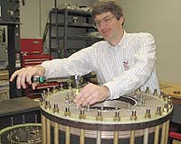 Washington DC (SPX) Feb 06, 2006 While studying a compound made of the elements cerium- rhodium-indium, researchers at Los Alamos National Laboratory and the University of Illinois at Urbana-Champaign have discovered that a magnetic state can coexist with superconductivity in a specific temperature and pressure range. The discovery is a step toward a deeper understanding of how Nature is organized in regimes ranging from the fabric of the cosmos to the most fundamental components of elementary particles. In research published recently in the scientific journal Nature, Los Alamos scientists Tuson Park, Joe D. Thompson, and their colleagues describe the discovery of hidden magnetism in the CeRhIn5 compound. In studying the compound, researchers found that a purely unconventional superconducting phase is separated from a phase of coexisting magnetism and unconventional superconductivity, with the boundary between these two phases controlled by the laws of quantum physics. Unconventional superconductors are materials that exhibit superconductivity, a complete absence of electrical resistance under cold temperatures, but use exotic mechanisms. Conventional wisdom has long held that the magnetism is excluded as materials change phases, but the researchers now show that it is merely hidden by unconventional superconductivity and can be made to reappear in the presence of an applied magnetic field. According to Thompson, "this discovery provides an exciting opportunity to better understand how magnetism and unconventional superconductivity are related in more-complex materials and may reveal more about the technologically important field of high temperature superconductors." At low temperatures, electrons in a metal can pair with each other to create superconductivity, align in a magnetically ordered state, or do neither. Until recently, these mutually exclusive options for electrons were the norm, but the discovery of complex electronic materials like CeRhIn5, which can sustain more exotic forms of superconductivity, now shows that electrons can participate simultaneously in magnetism and superconductivity. In addition to Park and Thompson, the research team included Filip Ronning, Roman Movshovich, and John Sarrao from Los Alamos, along with Huiqiu Yuan and Myron Salamon, from the University of Illinois at Urbana-Champaign. Related Links Los Alamos National Laboratory