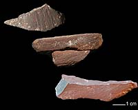 Tempe AZ (SPX) Oct 23, 2007 Evidence of early humans living on the coast in South Africa, harvesting food from the sea, employing complex bladelet tools and using red pigments in symbolic behavior 164,000 years ago, far earlier than previously documented, is being reported in the Oct. 18 issue of the journal Nature. The international team of researchers reporting the findings include Curtis Marean, a paleoanthropologist with the Institute of Human Origins at Arizona State University and three graduate students in the School of Human Evolution and Social Change. "Our findings show that at 164,000 years ago in coastal South Africa humans expanded their diet to include shellfish and other marine resources, perhaps as a response to harsh environmental conditions," notes Marean, a professor in ASU's School of Human Evolution and Social Change. "This is the earliest dated observation of this behavior." Further, the researchers report that co-occurring with this diet expansion is a very early use of pigment, likely for symbolic behavior, as well as the use of bladelet stone tool technology, previously dating to 70,000 years ago. These new findings not only move back the timeline for the evolution of modern humans, they show that lifestyles focused on coastal habitats and resources may have been crucial to the evolution and survival of these early humans. Searching for beginnings After decades of debate, paleoanthropologists now agree the genetic and fossil evidence suggests that the modern human species - Homo sapiens - evolved in Africa between 100,000 and 200,000 years ago. Yet, archaeological sites during that time period are rare in Africa. And, given the enormous expanse of the continent, where in Africa did this crucial step to modern humans occur? "Archaeologists have had a hard time finding material residues of these earliest modern humans," Marean says. "The world was in a glacial stage 125,000 to 195,000 years ago, and much of Africa was dry to mostly desert; in many areas food would have been difficult to acquire. The paleoenvironmental data indicate there are only five or six places in all of Africa where humans could have survived these harsh conditions." In seeking the "perfect site" to explore, Marean analyzed ocean currents, climate data, geological formations and other data to pin down a location where he felt sure to find one of these progenitor populations: the Cape of South Africa at Pinnacle Point. "It was important that we knew exactly where to look and what we were looking for," says Marean. This type of research is expensive and funding is competitive. Marean and the team of scientists who set out to Pinnacle Point to search for this elusive population, did so with the help of a $2.5 million grant from the National Science Foundation's Human Origins: Moving in New Directions (HOMINID) program. Their findings are reported in the Nature paper "Early human use of marine resources and pigment in South Africa during the Middle Pleistocene." In addition to Marean, authors on the paper include three graduate students in ASU's School of Human Evolution and Social Change: Erin Thompson, Hope Williams and Jocelyn Bernatchez. Other authors are Miryam Bar-Matthews of the Geological Survey of Israel, Erich Fisher of the University of Florida, Paul Goldberg of Boston University, Andy I.R. Herries of the University of New South Wales (Australia), Zenobia Jacobs of the University of Wollongong (Australia), Antonieta Jerardino of the University of Cape Town (South Africa), Panagiotis Karkanas of Greece's Ministry of Culture, Tom Minichillo of the University of Washington, Ian Watts from London and excavation co-director Peter J. Nilssen of the Iziko South African Museum. The Middle Stone Age, dated between 35,000 and 300,000 years ago, is the technological stage when anatomically modern humans emerged in Africa, along with modern cognitive behavior, says Marean. When, however, within that stage modern human behavior arose is currently debated, he adds. "This time is beyond the range of radiocarbon dating, yet the dates on the finds published here are more secure than is typical due to the use of two advanced and independent techniques," Marean says. Uranium series dates were attained by Bar-Matthews on speleothem (the material of stalagmites), and optically stimulated luminescence dates were developed by Jacobs. According to Marean, the latter technique dates the last time that individual grains of sand were exposed to light, and thousands of grains were measured. Migrating along the coast "Generally speaking, coastal areas were of no use to early humans - unless they knew how to use the sea as a food source" says Marean. "For millions of years, our earliest hunter-gatherer relatives only ate terrestrial plants and animals. Shellfish was one of the last additions to the human diet before domesticated plants and animals were introduced." Before, the earliest evidence for human use of marine resources and coastal habitats was dated about 125,000 years ago. "Our research shows that humans started doing this at least 40,000 years earlier. This could have very well been a response to the extreme environmental conditions they were experiencing," he says. "We also found what archaeologists call bladelets - little blades less than 10 millimeters in width, about the size of your little finger," Marean says. "These could be attached to the end of a stick to form a point for a spear, or lined up like barbs on a dart - which shows they were already using complex compound tools. And, we found evidence that they were using pigments, especially red ochre, in ways that we believe were symbolic," he describes. Archaeologists view symbolic behavior as one of the clues that modern language may have been present. The earliest bladelet technology was previously dated to 70,000 years ago, near the end of the Middle Stone Age, and the modified pigments are the earliest securely dated and published evidence for
