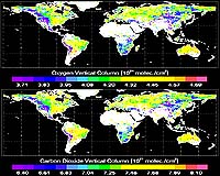 Montreux, Switzerland (SPX) Apr 26, 2007 The global carbon cycle plays a vital role in climate change and is of intense importance to policy makers, but significant knowledge gaps remain in our understanding of it. Several scientists at the Envisat Symposium this week have highlighted research projects using ESA satellites to understand better this complex process. The total number of carbon atoms on Earth is fixed - they are exchanged between the ocean, atmosphere, land and biosphere. The fact that human activities are pumping extra carbon dioxide into the atmosphere, by fossil fuel burning and deforestation, is well known. Because of this, atmospheric carbon dioxide concentrations are higher today than they have been over the last half-million years or so. Scientists are now using satellite instruments to locate sinks and sources of CO2 in the ocean and land. Across land and sea, our world's plant life uses the process called photosynthesis to convert incoming sunlight into chemical energy. Plants accumulate carbon dioxide during photosynthesis and store it in their tissues, making them carbon sinks. Dr Nadine Gobron of the European Commission's Joint Research Centre (EC-JRC) in Ispra, Italy, is combining daily multispectral observations from Envisat's Medium Resolution Imaging Spectrometer (MERIS) instrument with a sophisticated processing algorithm to reveal global photosynthesis activity on land. The fraction of incoming solar radiation useful for photosynthesis that is actually absorbed by vegetation - a value known as the Fraction of Absorbed Photosynthetically Active Radiation (FAPAR) - is recognised as an essential climate variable by international organisations including the Global Climate Observing System (GCOS). FAPAR is regularly used in diagnostic and predictive models to compute the primary productivity of the vegetation canopies. The operational FAPAR MERIS product is derived with the JRC-FAPAR algorithm, which has been designed to exploit the daily MERIS spectral measurements in the blue, red and near-infrared bands with no prior knowledge on the land cover. This methodology involves a physically-based approach which can be adopted for generating this biophysical product from various optical medium resolution sensors. The algorithm used allows scientists to derive the equivalent biophysical product from other optical satellite sensors, even retired ones, to ensure the availability of a long-time series of global FAPAR, which is essential to assess environmental trends, guide policy making and support sustainable development activities. "Demonstration products at the global scale are now available and are ready to be used in state-of-the-art carbon data assimilation systems (CCDAS) for better understanding the role of the biosphere in the global carbon cycle," Gobron said. Phytoplankton, microscopic marine plants that drift on or near the surface of the sea, absorb atmospheric carbon dioxide through photosynthesis just as their terrestrial 'cousins' do. While individually microscopic, phytoplankton chlorophyll collectively tints the surrounding ocean waters, providing a means of detecting these tiny organisms from space with dedicated ocean colour sensors, such as MERIS. Dr Michael Buchwitz from the Institute of Environmental Physics (IUP) at the University of Bremen in Germany presented global carbon dioxide measurements based on observations from Envisat's SCIAMACHY instrument from 2003 to 2005. The SCIAMACHY (Scanning Imaging Absorption Spectrometer for Atmospheric Chartography) instrument is the first space sensor capable of measuring the most important greenhouse gases with high sensitivity down to the Earth's surface because it observes the spectrum of sunlight shining through the atmosphere in 'nadir' looking operations on a global scale. Buchwitz explained that he and his colleagues first measure the absolute carbon dioxide (CO2) column in number of CO2 molecules per area above the Earth's surface. Then, they measure the oxygen (O2) column that can be easily converted into an 'air column'. As seen in the image above, both figures are essentially identical, as he had expected. "There are, however, tiny differences and this is the CO2 source/sink information we are interested in," Buchwitz said. "To see this we compute the CO2/O2 ratio which can be converted into a column averaged CO2 mixing ratio." Dr Paul Monks from the University of Leicester is using SCIAMACHY data to measure how much CO2 is being taken up by plants. Using 20,000 individual measurements a month, he is monitoring CO2 drawn down over Siberia, North America and Northern Europe. According to Monks, this view from space is providing the first evidence of the Earth 'breathing' by allowing scientists to witness the biology drawing down CO2 during the growing season and then releasing some of it back. "The exciting new area breaking from this sort of data is that we begin to be able to look at the tropics, which are the 'lungs' of the atmospheric system," Monks said. "Using this data, we are going to be able to assess how efficient the tropics are at modulating carbon as well as how that is changing with time as climate change effects the tropical biosystem." By comparing the satellite data to aircraft data and to remote-sensing sites on the surface, Monks learned the method he and his colleagues are using is approaching a precision of around 1%, giving them confidence in what they see from space. By better understanding all of the parameters involved in the carbon cycle, scientists can better predict climate change as well as better monitor international treaties aimed at reducing greenhouse gas emissions, such as the Kyoto Protocol which addresses the reduction of six greenhouse gases including carbon dioxide. Email This Article