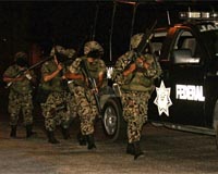 Mexico City (AFP) June 7, 2009 Sixteen gunmen and two soldiers were killed during a confrontation early Sunday at the popular Mexican resort town of Acapulco, the National Defense Secretariat said. Army troops began receiving fire when they arrived on the scene late Saturday, following an anonymous tip, the secretariat said in a statement. The clash lasted several hours, during which "five people were arrested and 16 gunmen were killed," and "a captain and a soldier" died, it added. An officer and eight troops were also wounded in the confrontation. During the operation, troops seized 36 rifles, 13 shotguns, two hand grenades, 13 fragmentation hand grenades, 3,525 cartridges, 180 magazines and eight vehicles, according to the secretariat. Acapulco, a major sea port on Mexico's west coast, is also a stronghold of rival drug cartels who are fighting a bloody war to control drug trafficking concentrated in the northern part of the country, close to the border with the United States, the world's top consumer of cocaine. Since taking power at the end of 2006, President Felipe Calderon has gambled his presidency on the fight against organized crime, deploying some 36,000 troops in a nationwide clampdown. The Mexican government blames the war between drug cartels for the majority of the 7,700 homicides in the country since 2008, although Calderon has said that killings have dropped in some of the most volatile states. Share This Article With Planet Earth